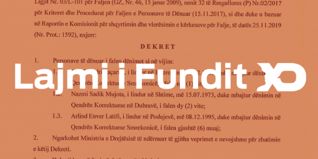 Granit Paçarizi i cili ishte duke mbajtur dënimin në Qendrën Korrektuese në Smrekonicë. Këtij të fundit i janë falur 1 vit.