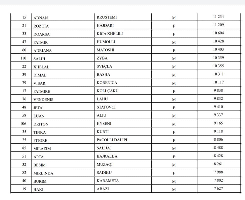 Është bërë publike lista e votave që kanë marrë anëtarët e Lëvizjes Vetëvendosje dhe listës së Vjosa Osmanit në zgjedhjet e 14 shkurtit.