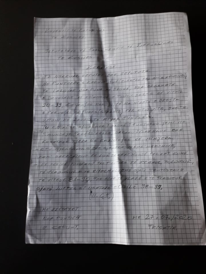 Me anë të kësaj letre ata kërkojnë njohjen e përvojës së punës për vitet 1990 deri në vitin 1999.