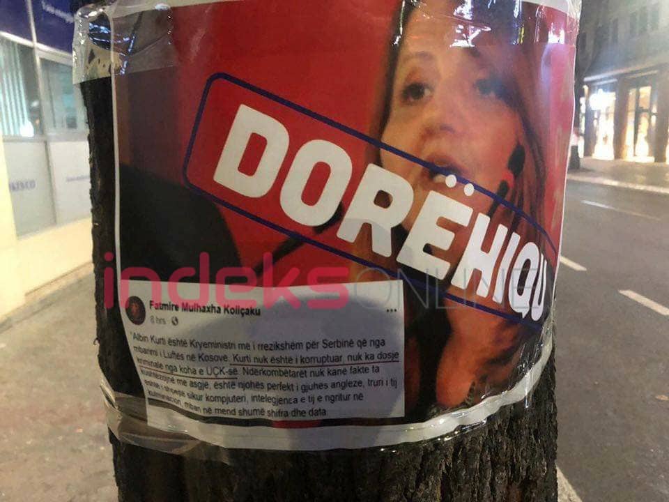 Sot në orët e para të mëngjesit, në qytetin e saj të lindjes, Pejën u panë dhjetëra posterë, ku shihet fotografia e Kollçakut dhe mbi të fjala “Dorëhiqu”, ndërsa citohen edhe fjalët e saj që publikoi në Facebook.