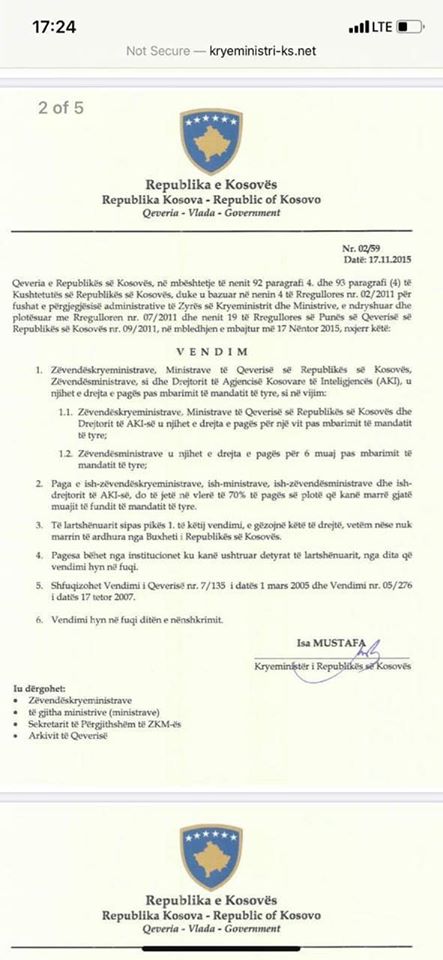 Sot Qeveria Kurti mori disa vendime me hov, si dhe padrejtësisht e me tendencë po tenton ta mashtrojë opinionin. Për populizëm këtë mashtrim e quajtën si shfuqizim i vendimeve të Kryeministrit Haradinaj. Për shkak të korrektësisë qytetarët duhet të dinë se sot është shfuqizuar vendimi i Isa Mustafës i vitit 2015. Ky vendim parashihte privilegje për zyrtarët edhe pas përfundimit të mandatit. Shpresoj që Kryeministri Kurti e ka informuar partnerin e tij të koalicionit Z. Mustafa për këtë vendim. E neve na mbetet ta informojmë opinionin për këtë mashtrim të radhës.