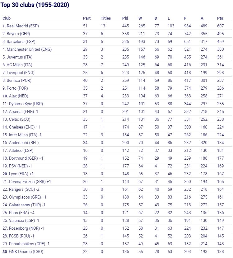 UEFA ka shpallur listën me klubet më të mira në histori të garës.
