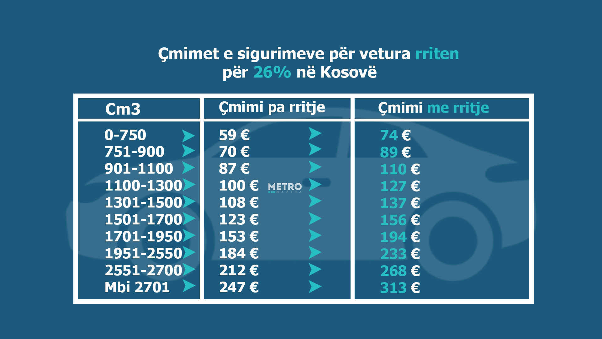 Metro ka punuar një grafikë, ku tregohet se për sa rriten çmimet e tarifave për vetura, në bazë të centimetrave kubik të saj.