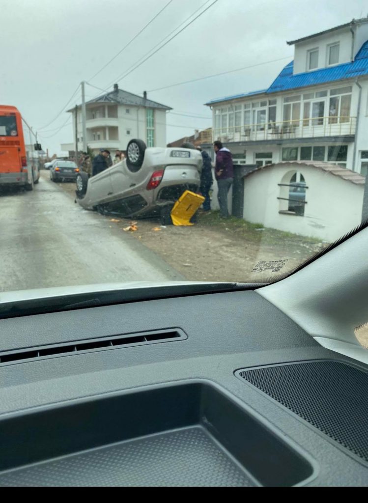Pamje nga vendi i ngjarjes, ku shihet vetura e dëmtuar rëndë, teksa thuhet se ka edhe të lënduar.