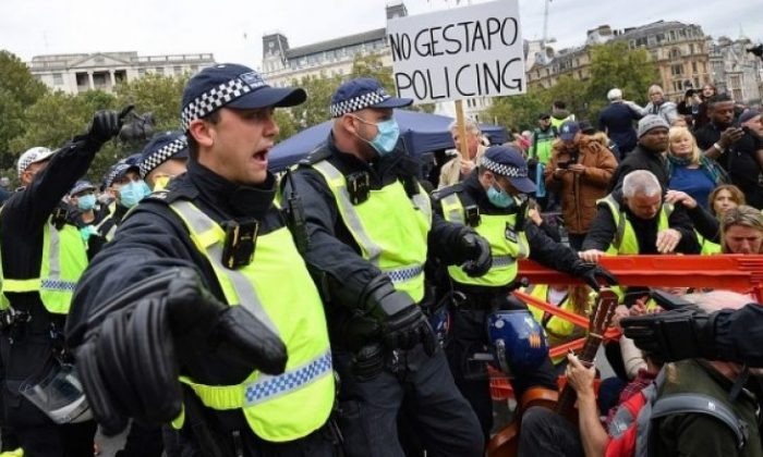 Rreth 15 000 protestues u mblodhën në Londër për të marshuar kundër masave të qeverisë britanike për ndalimin e përhapjes së coronavirusit. Në marshimin që u...