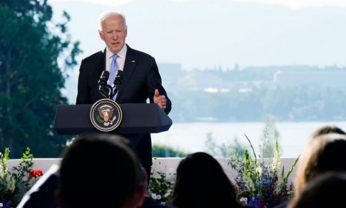 Presidenti i SHBA-së, Joe Biden, gjatë një konference për gazetarë, pas përfundimit të bisedimeve me presidentin rus Vladimir Putin, më herët sot në Gjenevë...