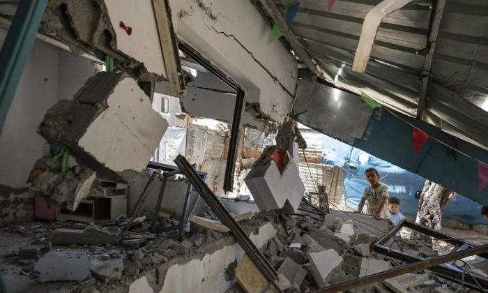 Një familje në Gaza është mbledhur përreth zjarrit të ndezur në rrënojat e shtëpisë së tyre. Përreth tyre është edhe ndërtesa disakatëshe, në të cilën...