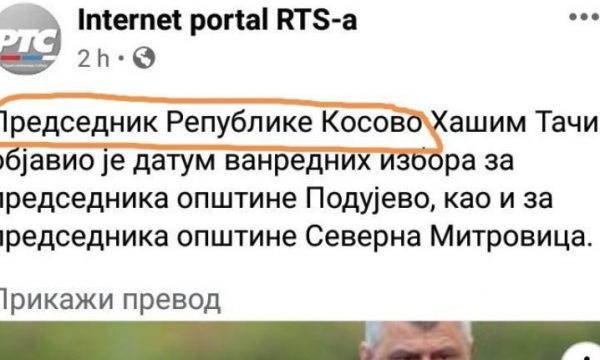 Televizioni publik i Serbisë (RTS) në një shkrim që kanë publikuar rreth caktimit të datës së zgjedhjeve të jashtëzakonshme për Podujevën dhe Mitrovicën e...