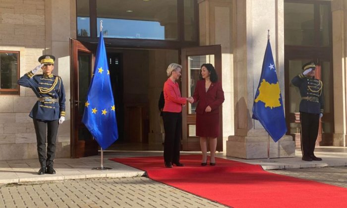 Presidentja e Komisionit Evropian, Ursula von der Leyen, ka mbërritur në Prishtinë. Ajo është pritur nga presidentja e vendit, Vjosa Osmani, me të cilën pas...