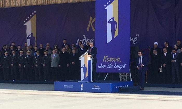 Presidenti i Kosovës, Hashim Thaçi njëherit komandant suprem i Ushtrisë së Kosovës para kalimit të paradës së FSK-së, ka thënë se ushtarët e FSK-së, janë...