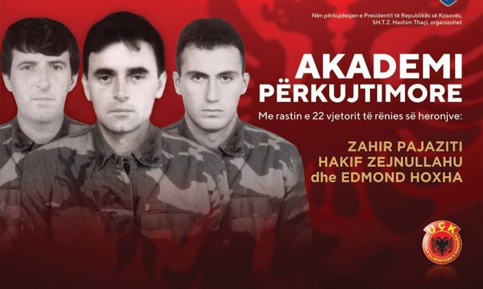 Presidenti i Kosovës, Hashim Thaçi ka përkujtuar 22 vjetorin e rënies së tre heronjve i Zahir Pajaziti, Hakif Zejnullahu dhe Edmond Hoxha. Përmes një postimi në...