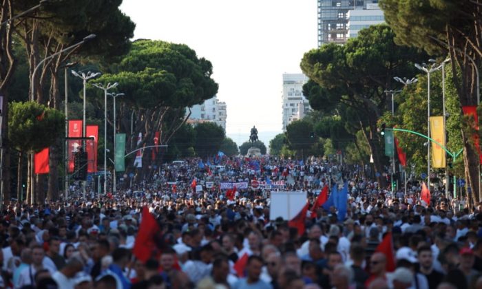Ka nisur protesta e parë e opozitës që nga marrja e drejtimit të PD-së nga ana e Sali Berishës. Protestuesit qëndruan në sheshin ‘Skënderbej” dhe “Nënë...