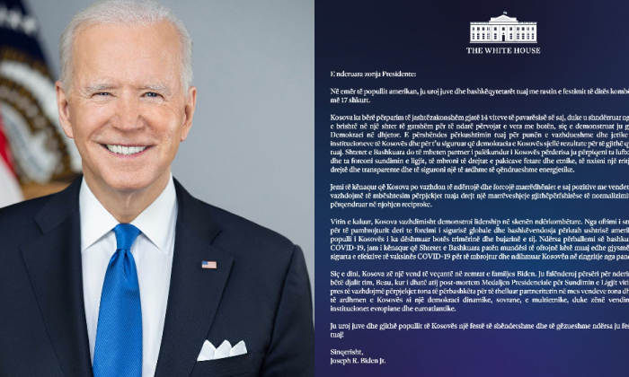 Presidenti i SHBA-ve, Joe Biden i ka shkruar letër urimi presidentes së Kosovës, Vjosa Osmani për 14 vjetorin e pavarësisë. Osmani në një postim në Facebook ka...
