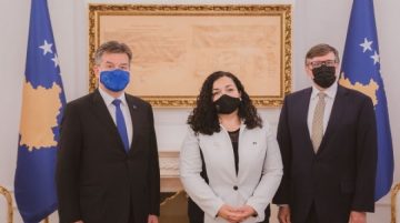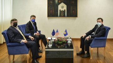 Ndihmës sekretari amerikan i shtetit, Matthew Palmer dhe i dërguari i BE-së për dialogun Kosovë-Serbi, Miroslav Lajçak, pas takimeve që zhvilluan dje me krerët e...