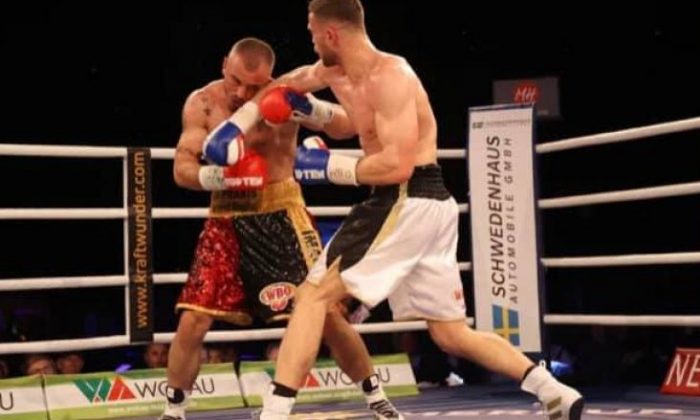 Pesha e kryqëzuar Roman Fress dhe Armend Xhoxhaj luftuan për titullin WBO Inter-Continental në luftën kryesore të mbrëmjes së boksit SES në skenën e liqenit në...