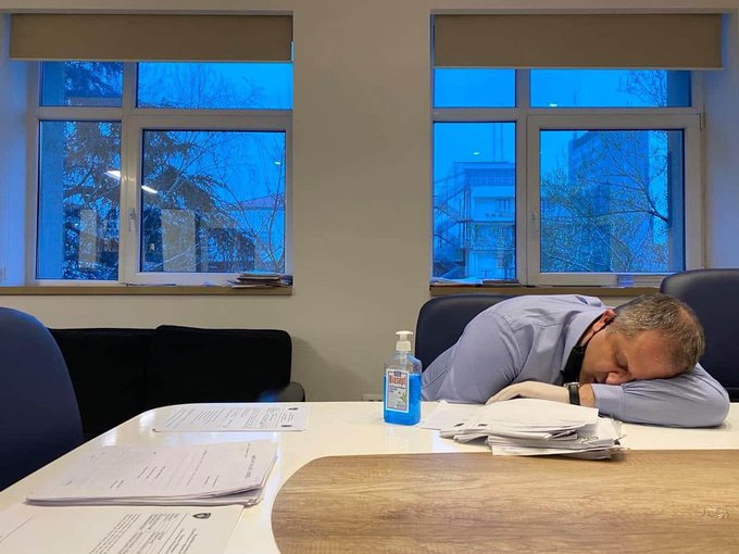 Përmes një foto të cilën ai e ka publikuar në rrjetin tij social Twitter, shihet se e ka zënë gjumi në zyrë.
