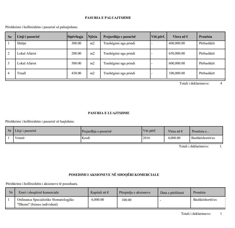 Ky i fundit në AKK ka deklaruar në vlerë prej 600 mijë euro, një lokal në vlerë prej 650 mijë euro, një lokal tjetër në vlerë 600 mijë euro dhe një truall në vlerë prej 100 mijë euro. Të gjitha këto deklarime, prejardhjen e kanë nga trashëgimia e prindit, ashtu siç ka deklaruar Sveçla, shkruan lajmi.net.