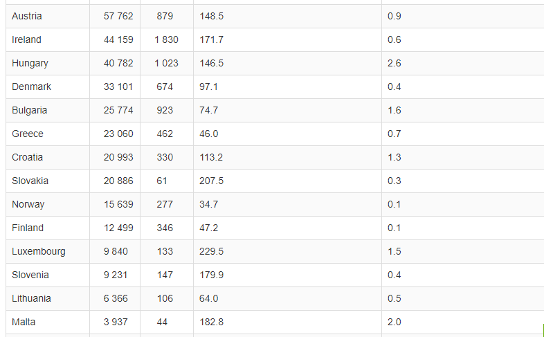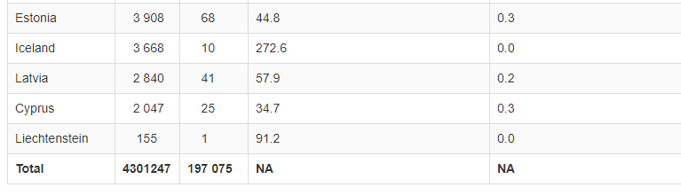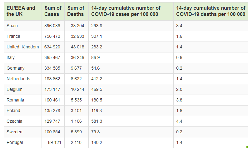 Të gjitha këto shtete kanë mbi 120 raste të infektimeve në 100 mijë banorë, gjë që i bën të jenë pjesë e listës së shteteve me rrezik të lartë.