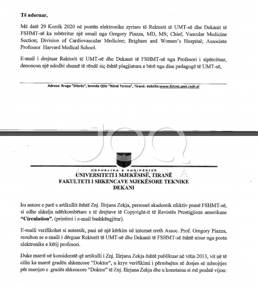 Mësohet se plagjiatura për Zekjan është verifikuar dhe ka rezultuar se punimi i profesorit amerikan është vjedhur nga dekania e sapozgjedhur.