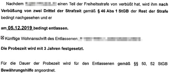 Megjithatë gjykatësi austriak kishte vendosur që të lironte para kohe me kusht, pasi që kishin konsideruar që ai ishte deradikalizuar.