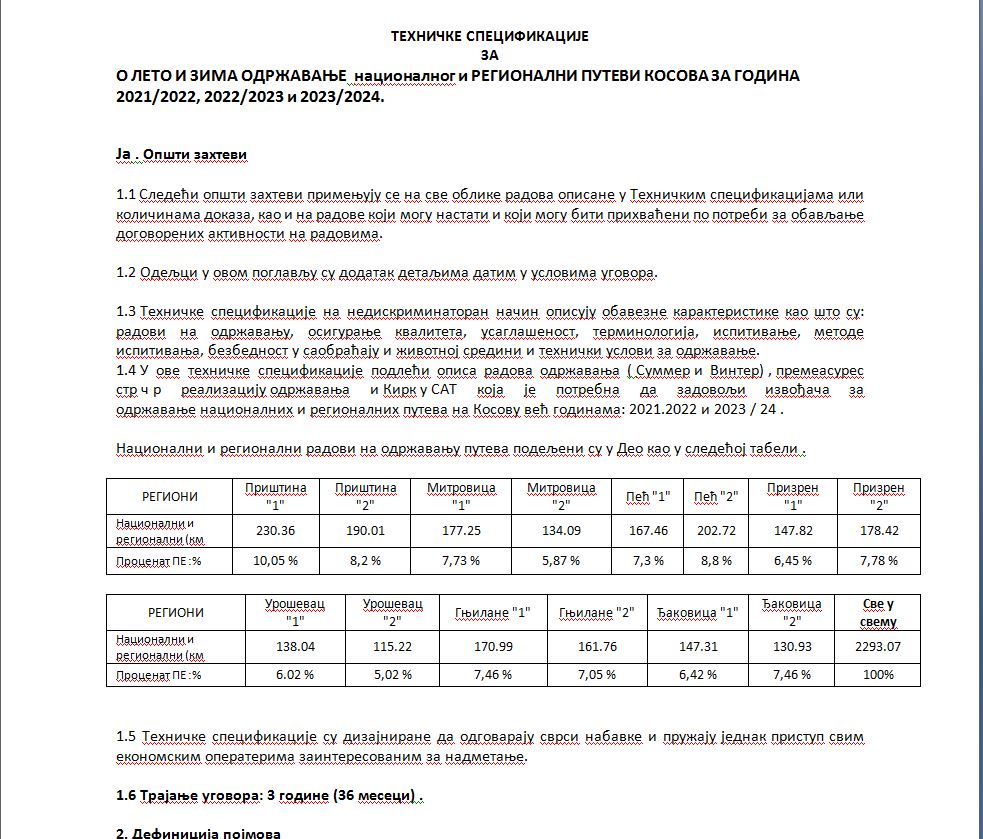 Meqenëse gjuha serbe është gjuhë zyre në Kosovë dhe duhet të përdorët nga administrata publike, ministria e Infrastrukturës e ka publikuar në tri gjuhët (shqip, serbisht, anglisht) ofertën publike për tenderin “Mirëmbajtja verore dhe dimërore e rrugëve nacionale dhe rajonale për vitin 2021, 2022, 2023”.