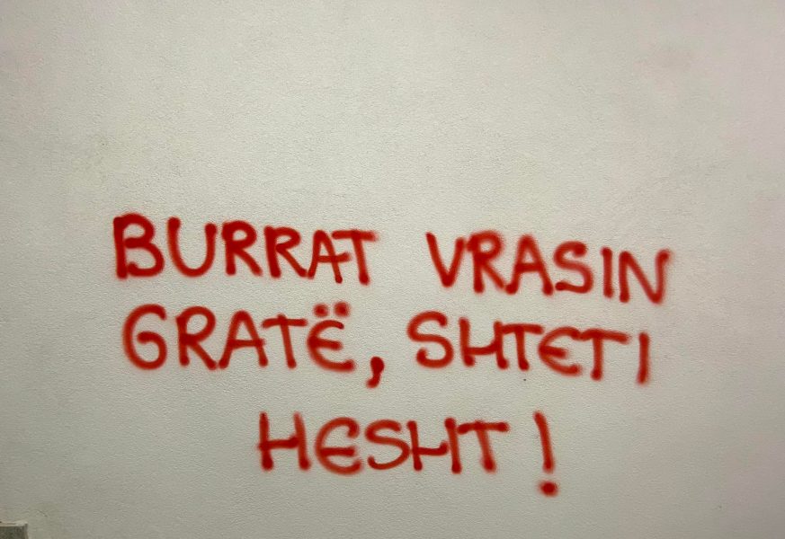 Në muret e policisë dhe në hapsira të tjera publike në Skenderaj, sot janë shënuar grafitet pas rastit të djeshëm që tronditi këtë qytet, ku një grua u vra nga burri i saj.
