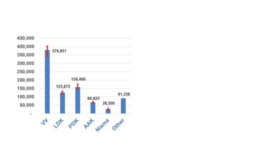 Sipas tij 22 deputetë do t’i fitojë PDK, 17 LDK dhe 9 mandate AAK.