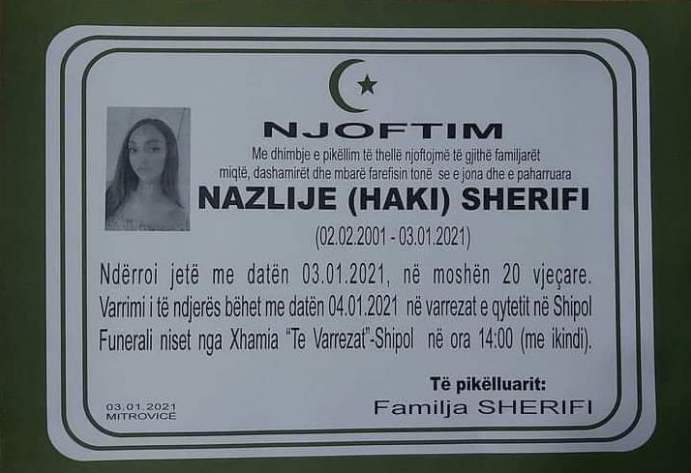 19 vjeçarja Nazlije Sherifi ka ndërruar jetë dje pas një sëmundje të rëndë.