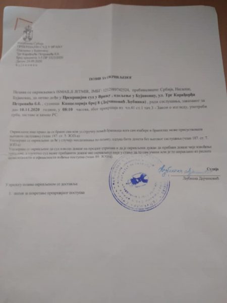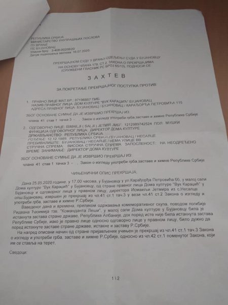 Por, pas katër muajsh, saktësisht më 5 të këtij muaji, drejtori Shtëpisë së Kulturës së kësaj komune, Jetmir Ismaili, mori një padi nga organet e policisë serbe.