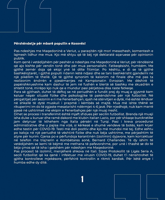 Në këtë letër të gjatë Vedat Muriqi ka treguar të gjitha arsyet e mungesës së tij derisa ka thënë se ai do të paraqitet kurdo që mundet për Kosovën.
