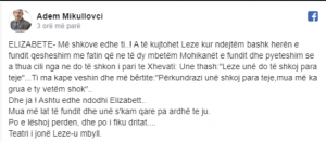 Ishte një postim i Adem Mikullovcit në ditën kur Leze Qena ndërroi jetë, që preku zemrat e të gjithëve.