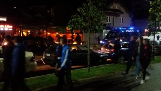 Në disa imazhe të publikuara në media lokale, shihen edhe turma e të rinjëve e makina të parkuara, e në anën tjetër edhe furgoni i Njësisë Speciale.