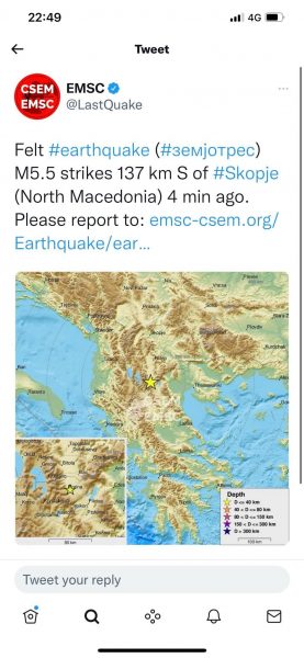 Ende nuk dihet se cfarë magnitude ka pasur tërmeti por epiqendra ka qenë në Republikën e Maqedonisë Veriore.