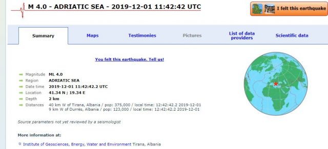 Një tjetër lëkundje tërmeti është ndjerë pak mimuta më parë në Shqipëri.