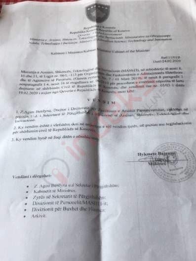 Nuk ka rendësi se kush vije në pushtet, tradita e emërimeve në baza partiake tashmë është bërë traditë. Ministrja Hykmete Bajrami e bën U.D të Sekretarit të Përgjithshëm në MASHT njeriun e LDK’së.
