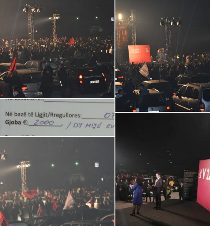 “Askush mbi ligjin! Shkelje e vendimit nr. 09/58 të Qeverisë së Kosovës (dt.14.01.2021), pikat 24 dhe 25, si dhe Ligjit për parandalimin dhe luftimin e pandemise. 2000 euro gjobë, sipas nenit 25.1 të ligjit në fjalë!”.
