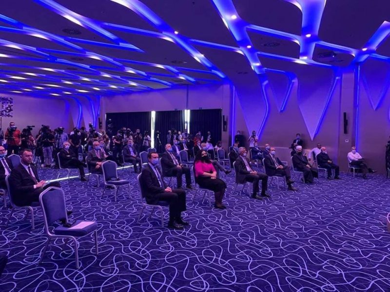 Viti i ri hebraik i ka bërë bashkë në një sallë presidentin Thaçi, kryeparlamentaren Osmani, kryeministrin Hoti dhe liderin e VV’së, Albin Kurtin. Pas tyre shihen edhe politikanë të tjerë.