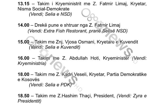 Burimet bëjnë me dije se shefi i qeverisë shqiptare do të ketë sot dhe nesër takime me krerë të shtetit dhe politikës në Kosovë.