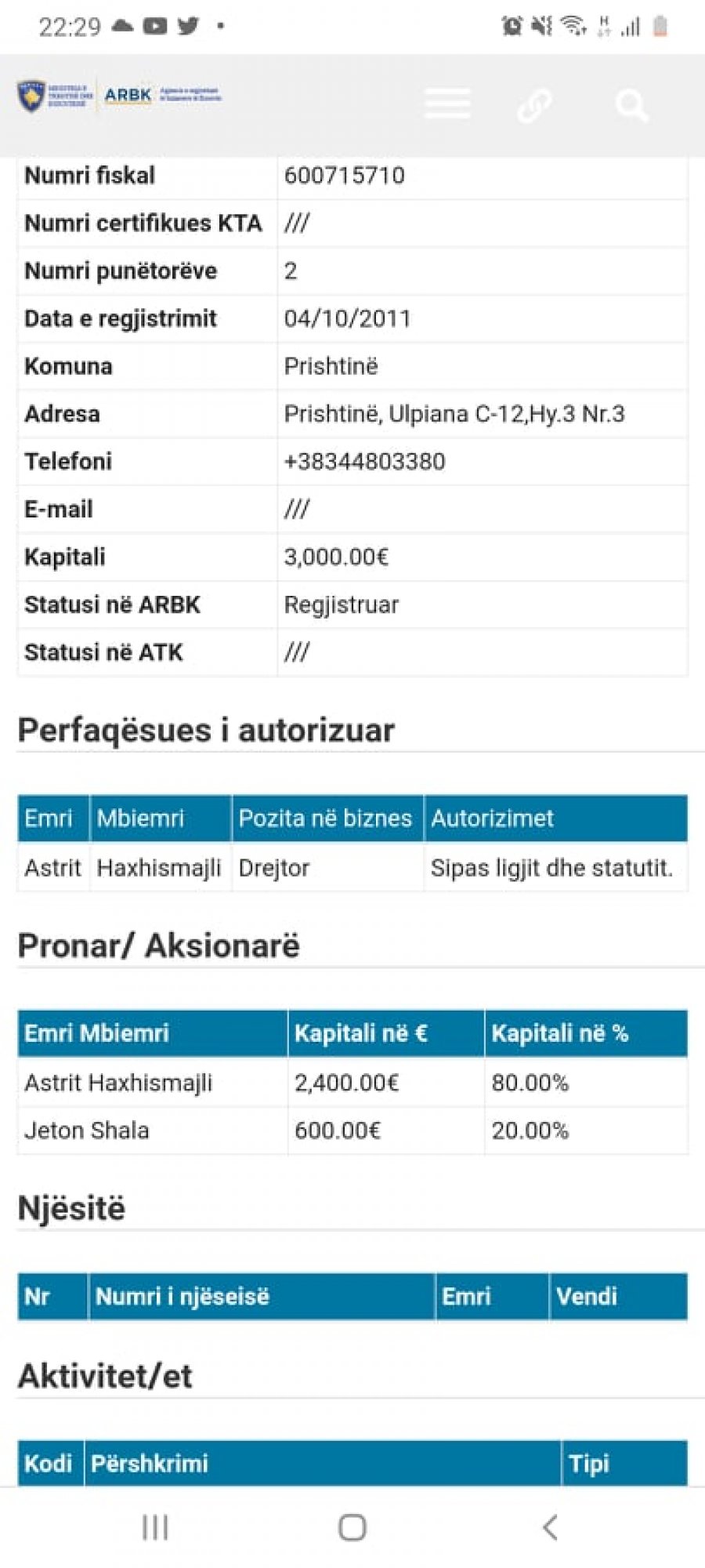 Sipas të dhënave në Agjencinë e Regjistrimit të Bizneseve në Kosovë, figuron emri i Jeton Shalës si një nga aksionarët.