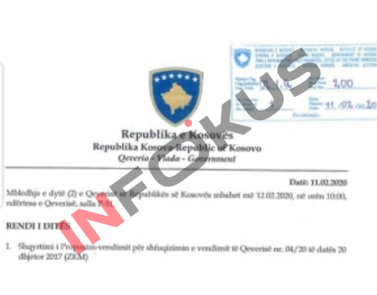 Gazeta inFokus, ka siguruar rendin e ditës të kësaj mbledhjeje, ku pika e parë është “Shqyrtimi i Propozim-vendimit për shfuqizimin e vendimit të Qeverisë nr. 04/20 së datës 20 dhjetor 2017 (ZKM)”.